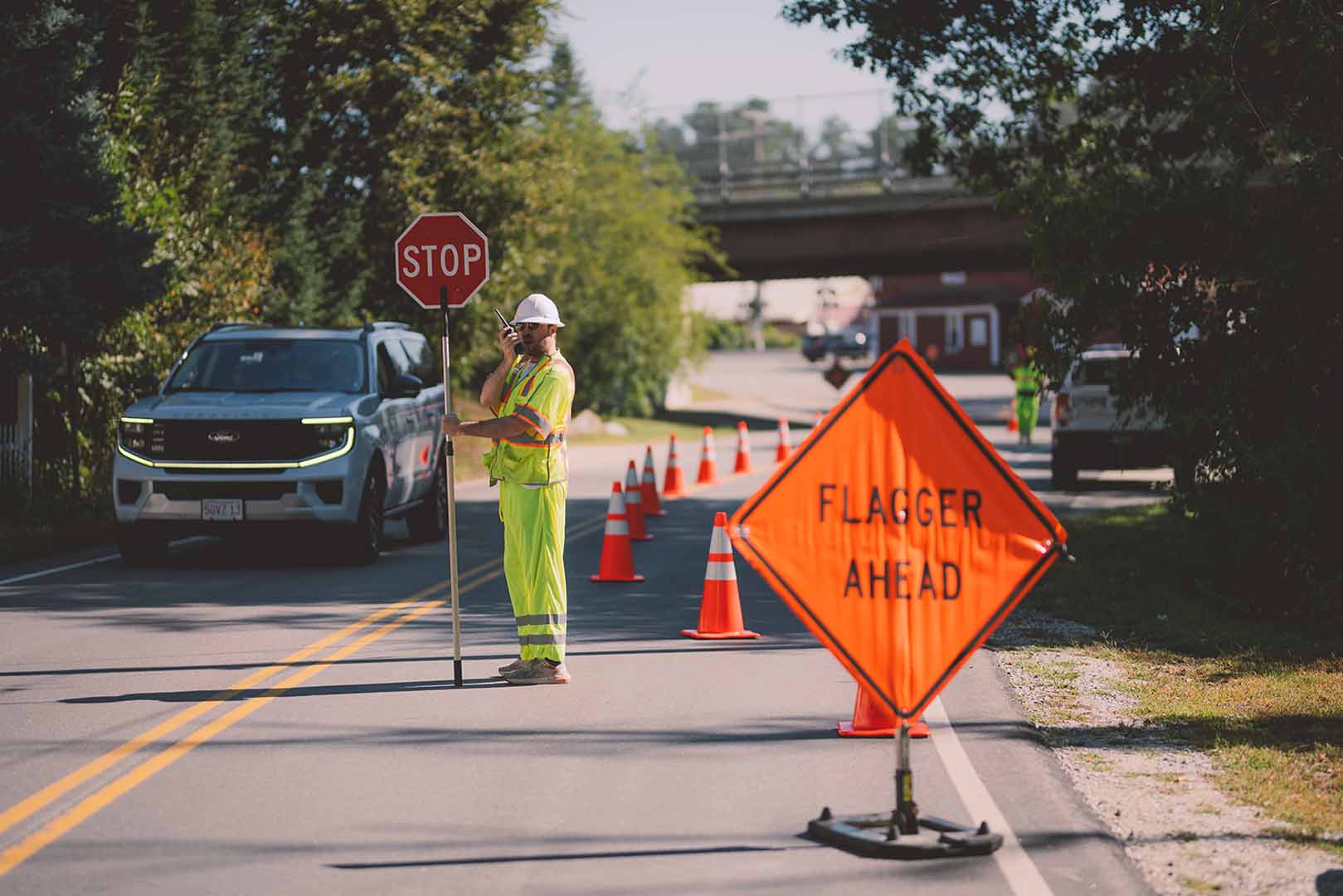 Providing Road Traffic Control and Flagging services throughout New England including Northern Vermont, New Hampshire, Southern Maine, Massachusetts, and Pennsylvania – call for a traffic control quote today.